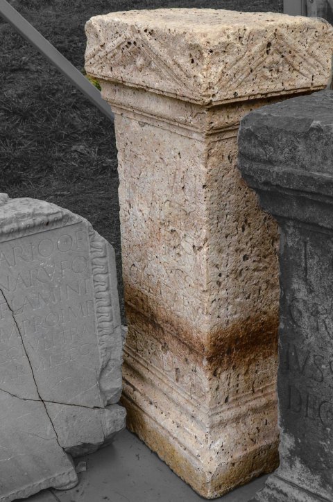 - Herculi / invicto / pr(o) (salute) Inpera/toris(!) col(legium) / Calatarum (!) / L(ucius) Livius Ma/rcellinus / d(onum) d(edit) d(edicavit)