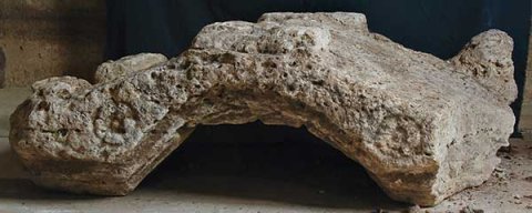 - Giebeldach mit liegenden Löwen auf den Ecken und eckigen Sockeln für Mittelakrotere. Innenseite tonnenförmig gewölbt, auf der Vorderseite Ornament (zwei Rosetten erkennbar).