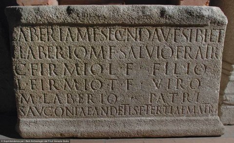 - Laberia M(arci) f(ilia) Secunda v(iva) f(ecit) sibi et / L(ucio) Laberio M(arci) f(ilio) Salvio fratri / C(ai) Firmio L(uci) f(ilio) filio L(ucio) Firmio T(iti) f(ilio) viro / M(arco) Laberio patri / Sauconiae Andetis f(iliae) Tertiae matri