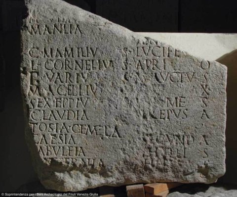 - ---] M(arcus) Vibiu[s ---] / Manlia [---]EN / C(aius) Mamilius Lucifer / L(ucius) Cornelius Aprio / P(ublius) Varius [---]auctus / M(arcus) Acellius [Feli]x(?) / Sex(tus) Eppius [He]rmes / Claudia Prepusa / Tosia Gemela / Caesia Secunda / [B]abuleia Hyllis / [C]aesernia H[al]lis(?) / [---