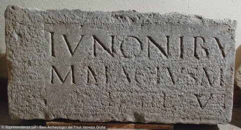 - Iunonibus sacrum / M(arcus) Magius M(arci) l(ibertus) Amarantus / IIIIIIvir et / Magia M(arci) f(ilia) Vera Magia M(arci) l(iberta) Ilias / aedem signa III portic(um) cum marceriis et / culina(m) et locum in quo ea sunt / votum solverunt / loco privato.
