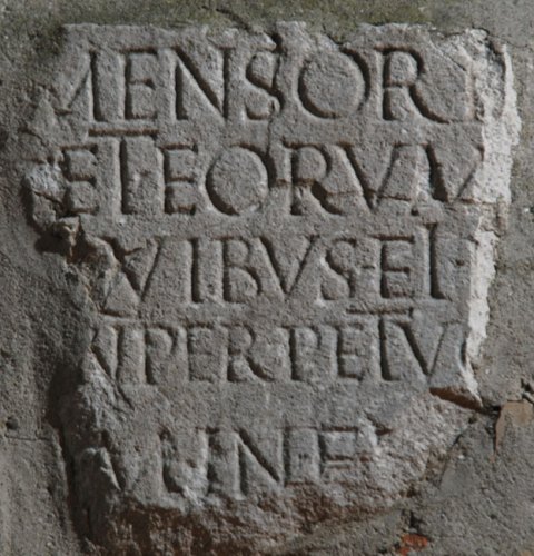 - ---] / mensori[s ---] / et eorum [---] / quibus ei F[---] / [i]n perpetuo [---] / [l(ocus)] m(onumenti) in fr(onte) [p(edes)