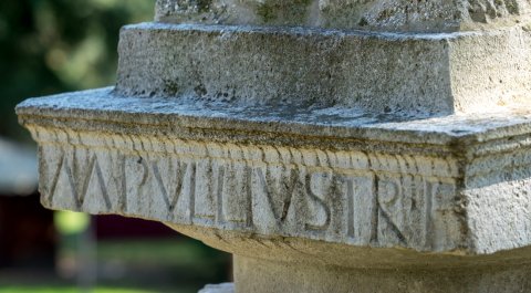 - Dorisches Kapitell, auf dem Abacus Inschrift (Löwen nicht zugehörig)