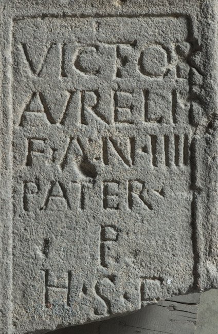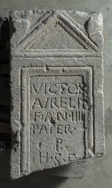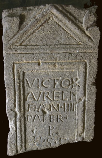 - Victor / Aureli / f(ilius) an(norum) IIII / pater / p(osuit) / h(ic) s(itus) e(st)