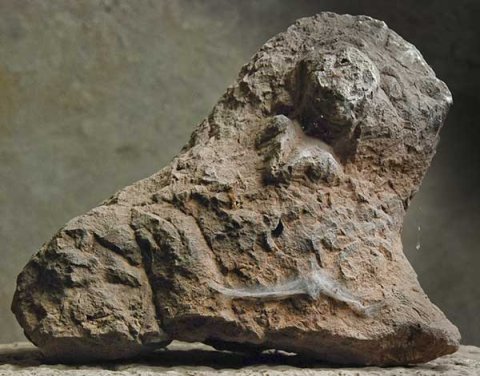 - liegender Löwe mit nach rechts gedrehtem Kopf