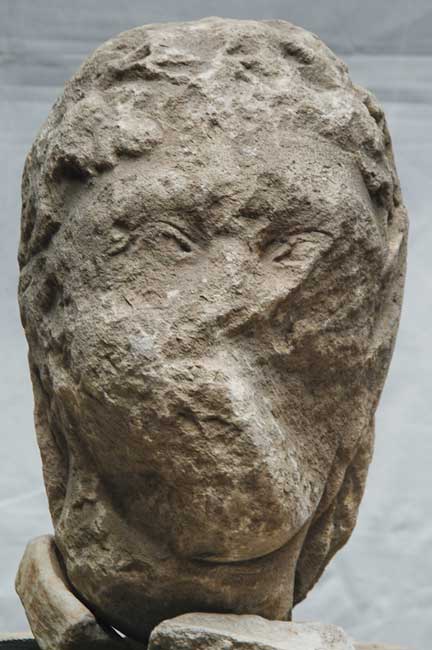 - im Hals abgebr., stark bestoßen, linke Gesichtsseite abgeschlagen