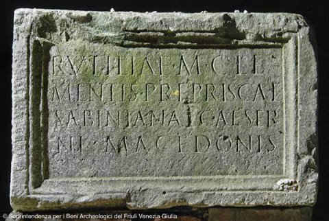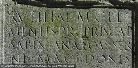 - Rutiliae M(arci) Cle/mentis Pr(isci) f(iliae) Priscae / Sabinianae Caeser/ni Macedonis