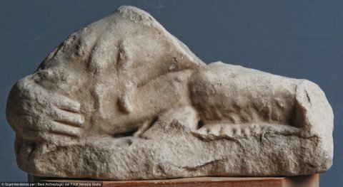 - Fragment eines Klinensarkophages: Liegefigur mit Hund ?