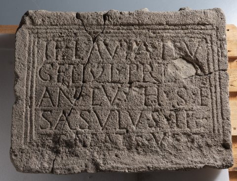 - T(ita!) Flavia T(iti) F(lavii) Ve/geti l(iberta) Pri[m]a / an(norum) LV h(ic) s(ita) e(st) / Sasulus T(iti) F(lavi?) / Renati s(ervus) v(ivus) s(ibi) e(t) s(uis)