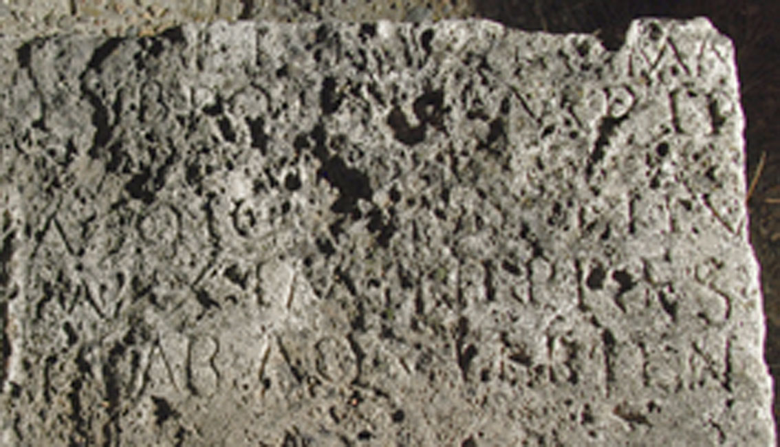 18570 Fragment einer Bauinschrift des Septimius Severus und seiner Söhne