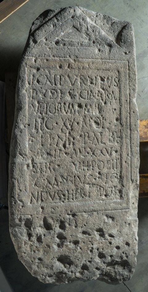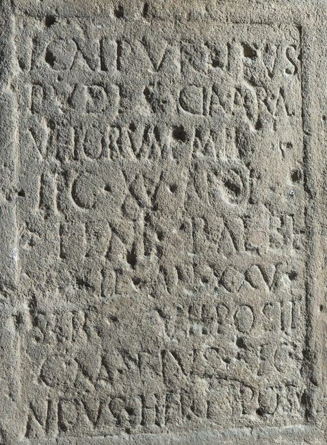 - L(ucius) Calpurnius / Pude(n)s Cla(udia) Ara / Ubiorum mil(es) / leg(ionis) XV Apol(linaris) / |(centuria) Feni Balbi / vixit an(nos) XXV / stip(endiorum) V h(ic) posit(us) / C(aius) Marius Secu/ndus heres posu(it) / |(centuria) eadem