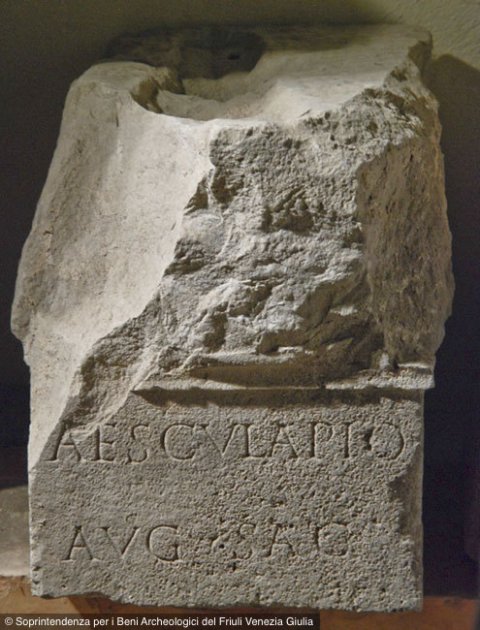 - CIL 05, 00726; InscrAqu-01, 00092; C. Tiussi, Il culto di Esculapio nell'area nord-adriatica, Roma 1999, 144 cat. I.A.10