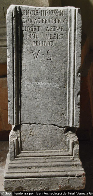 - ---] / c(o)hor(tis) III Lusit(anorum) / curat(or) pro prae(fecto) / c(o)hortis I Astur(um) / aedil(is) desig(natus) / Belino / v(otum) s(olvit)