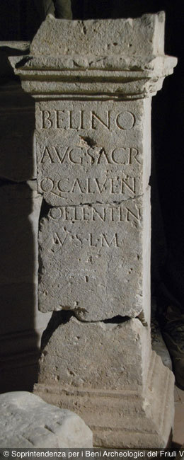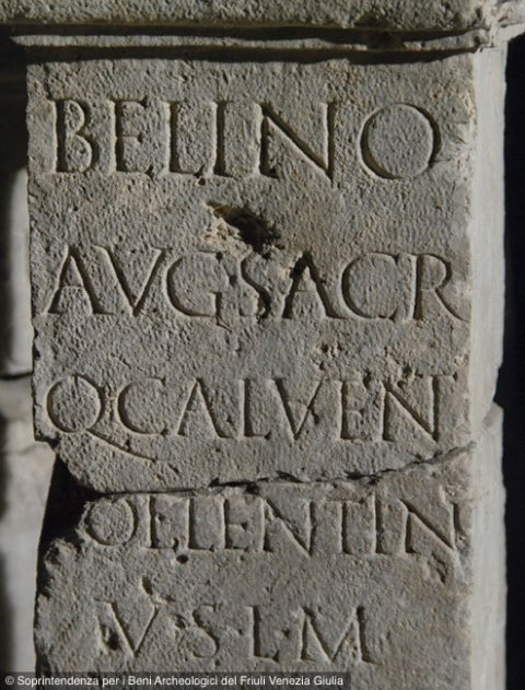 - Belino / Aug(usto) sacr(um) / Q(uintus) Calvent(ius) / [P]ollentin(us) / v(otum) s(olvit) l(ibens) m(erito)