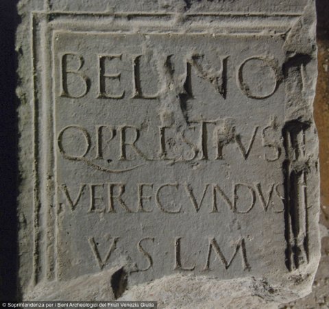 - Belino / Q(uintus) Prestius / Verecundus / v(otum) s(olvit) l(ibens) m(erito)