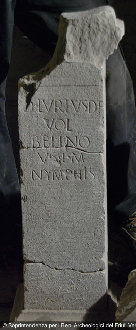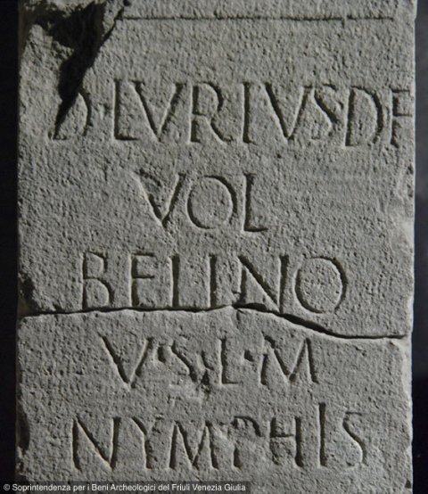 - D(ecimus) Lurius D(ecimi) f(ilius) / Vol(tinia) / Belino / v(otum) s(olvit) l(ibens) m(erito) / Nymphis
