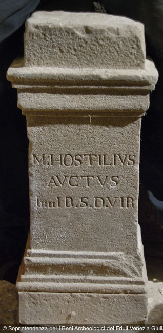 - M(arcus) Hostilius / Auctus / IIIIIIvir / B(elino) d(eo) s(acrum)