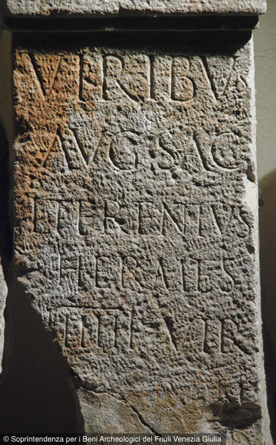 - Viribus/ Aug(ustis) sac(rum) / L(ucius) Terentius / Hermes / IIIIIIvir / [---]tus / [---
