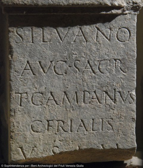 - Silvano / Aug(usto) sac(rum) / T(itus) Campanius / Cerialis / v(otum) s(olvit) l(ibens) m(erito)