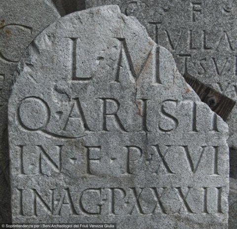 - L(ocus) m(onumenti) / Q(uinti) Aristi / in f(ronte) p(edes) XVI / in ag(ro) p(edes) XXXII