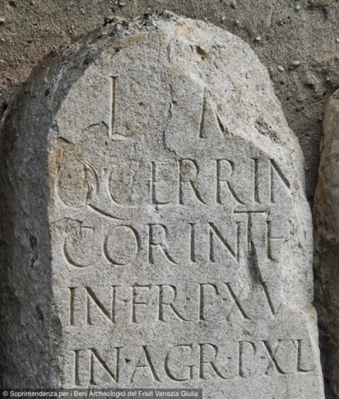 - L(ocus) m(onumenti) / Q(uinti) Cerrin[i] / Corinth[i] / in fr(onte) p(edes) XV[I] / in agr(o) p(edes) XL // l(ocus) m(onumenti) / [Q(uinti) Ce]rrini / [