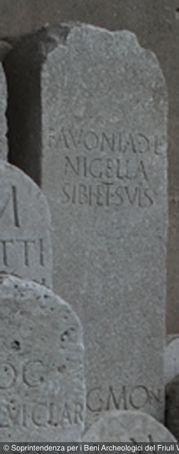 - Favonia |(mulieris) l(iberta) / Nigella / sibi et suis // loc(us) mon(umenti) / in fr(onte) p(edes) XVI in ag(ro) p(edes) XVI