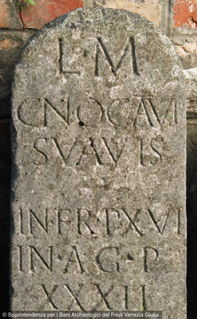 - L(ocus) m(onumenti) / Cn(aei) Octavi / Suavis / in fr(onte) p(edes) XVI / in agr(o) p(edes) / XXXII