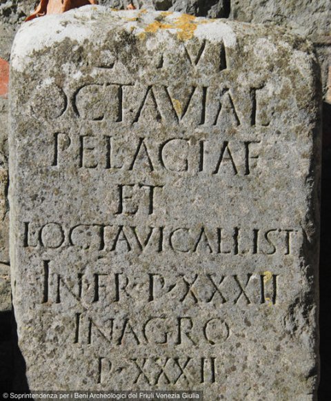- L(ocus) m(onumenti) / Octaviae / Pelagiae / et / L(uci) Octavi Callisti / in fr(onte) p(edes) XXXII / in agro / p(edes) XXXII