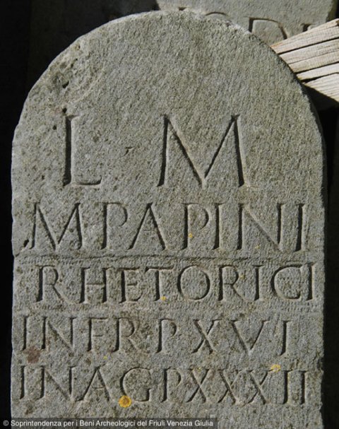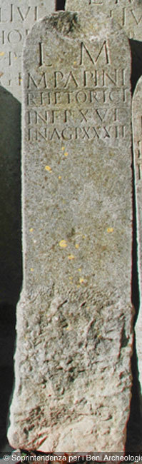 - L(ocus) m(onumenti) / M(arci) Papini / Rhetorici / in fr(onte) p(edes) XVI / in ag(ro) p(edes) XXXII
