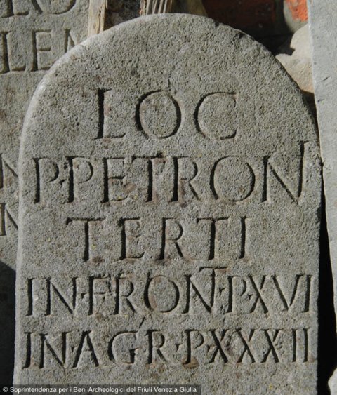 - Loc(us) / P(ubli) Petroni / Terti / in front(e) p(edes) XVI / in agr(o) p(edes) XXXII