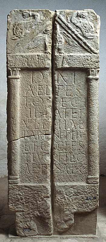- D(is) M(anibus) / Ael(io) Fes/to vet(erano) coh(ortis) / II Bat(avorum) et / Ul(piae) Iaiiae / parentib(us) / et Coc(ceio) Fes/tivo filio / Ael(ia) Festa f(aciendum) c(uravit)