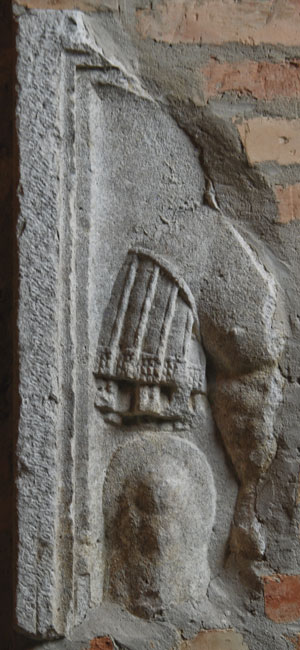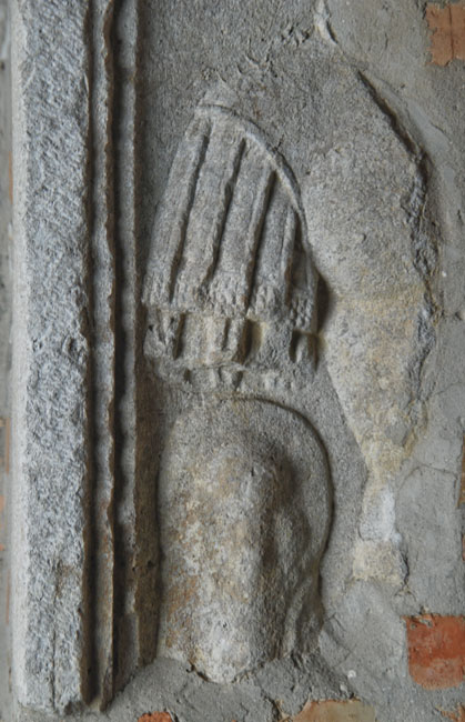 - linkes Seitenfeld eines Blocks (Altar ?) mit Waffen: Panzer, Beinschiene