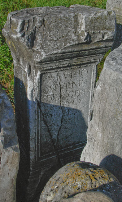 - P(ublio) Furio / Saturnino / leg(ato) Aug(usti) pr(o) pr(aetore) / co(n)s(uli) / col(onia) Dac(ica) / Sarmiz(egetusa)