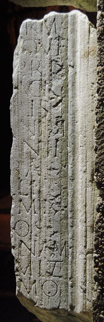 ---] Pap(iria) / [---]o / [--- S]arm(izegetusae) / [--- e]quit(i) / [---]pri / [---]acr / [---]IS / [--- ob h]onor(em?) / [--- flam]onii / [---]lli / [---]mi / [---]os / [--- or]nam(enta?) / [--- Sar]miz(egetusae) / [patron(o?) opti]mo .