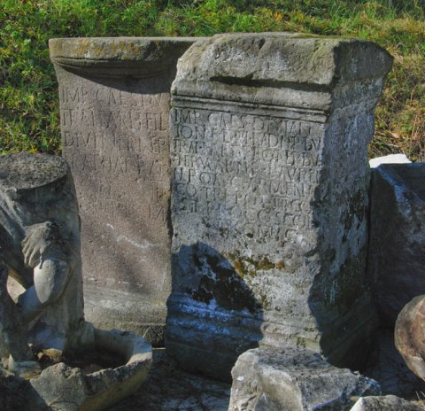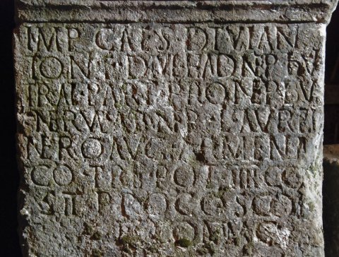 - Imp(eratori) Caes(ari) divi An/toni(ni) f(ilio) divi Had(riani) nep(oti) divi / Trai(ani) Parth(ici) pronep(oti) divi / Nervae abnep(oti) L(ucio) Aurel(io) / Vero Aug(usto) Armenia/co trib(unicia) pot(estate) IIII co(n)/s(uli) II proco(n)s(uli) coh(ors) / II Fl(avia) Com(magenorum)