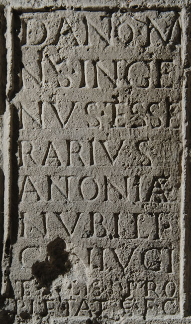 - D(is) M(anibus) / Anto/nius Inge/nu(u)s tesse/rarius / Antoniae / Nubili / coniugi / et fili(i)s pro / pietate f(aciendum) c(uravit)