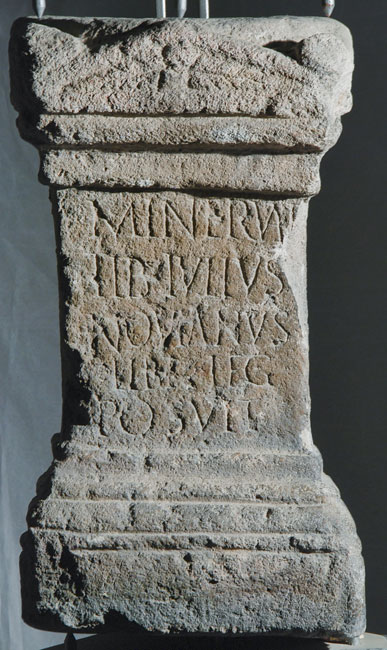 - Minervae / Tib(erius) Iulius / Novianus / libr(arius) leg(ati) / posuit