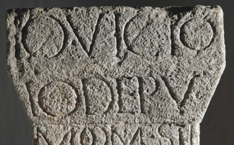 - Io(vi) Victo(ri) / Io(vi) Depu(lsori) / M(arcus) Domesti/us Restitu/tus |(centurio) le(gionis) XIII Ge(minae) / X ha(status) pos(terior) v(otum) / s(olvit) l(ibens) m(erito) Com/modo et Late/ran(o) X K(alendas) Sep/tem(bres)
