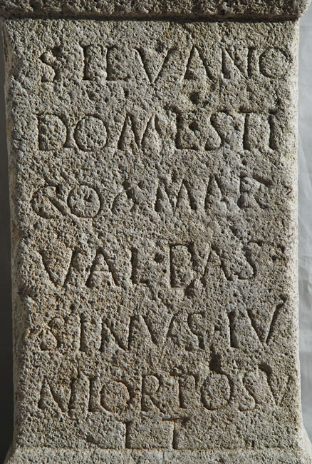 - Silvano Domesti/co Mar(cus) / Val(erius) Bas{s}/sinus Iu/nior posu/it