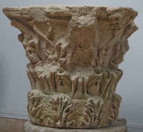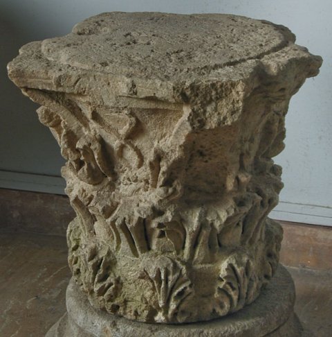 - Korinthisches Kapitell, zwischen den Voluten Zangenmotiv.