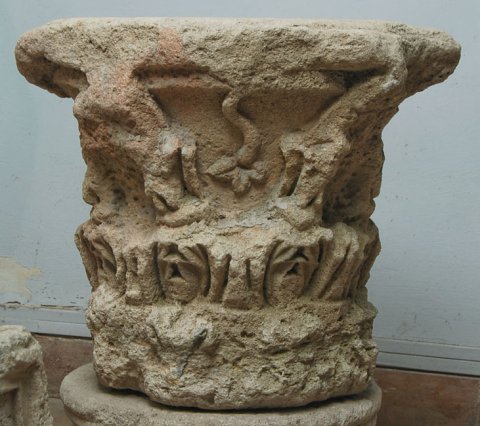 - Korinthisches Kapitell, zwischen den Voluten Blütenstängel.