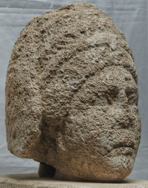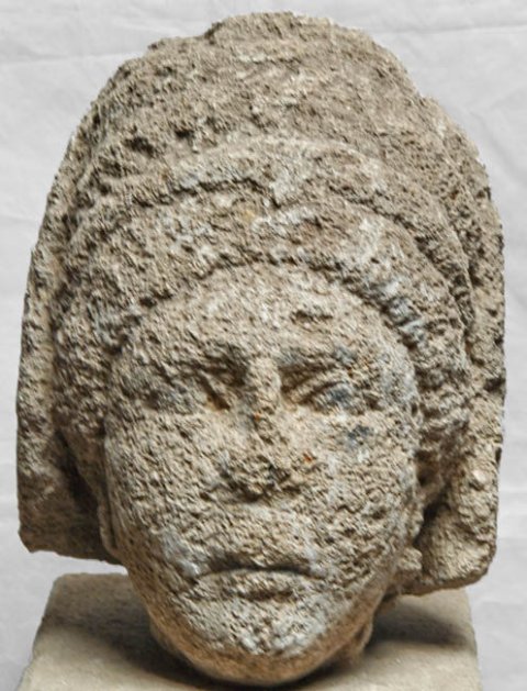 - Porträt einer jungen Frau mit Diadem (?) und über den Kopf gezogenem Mantel.