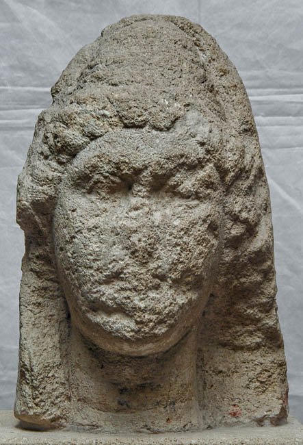 - Porträt einer jungen Frau mit Frisur der Faustina maior und über den Kopf gezogenem Mantel