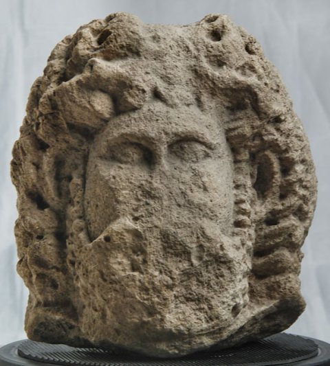 - Mythische Figur : Jupiter (bärtiger Kopf mit langen Locken).