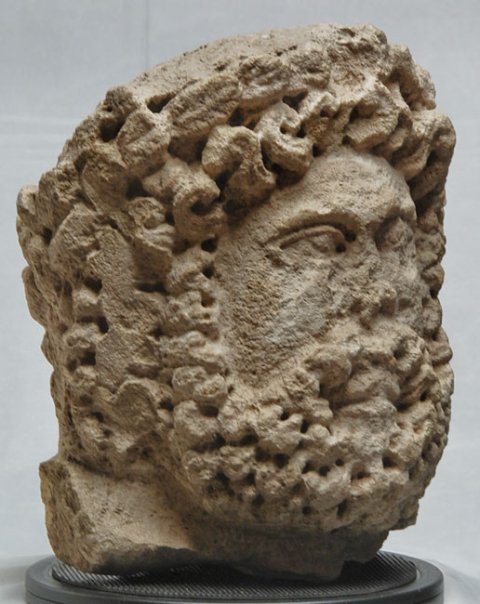 - Mythische Figur : Jupiter (bärtiger Kopf mit langen Locken und Lorbeerkranz).