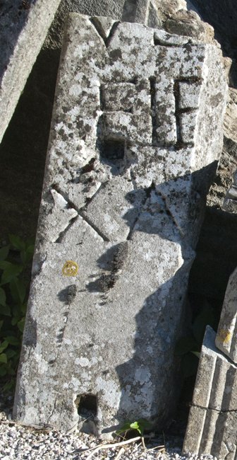 - links beschnitten, oben u. rechts abgebr., früher rechts mehr erhalten (?), in der Unterkante Klammerloch