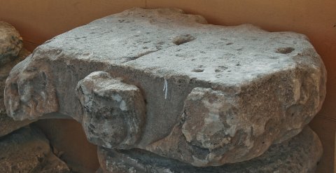 - unten abgebr., stark abgerieben, in der Oberseite Dübelloch mit Gusskanal
