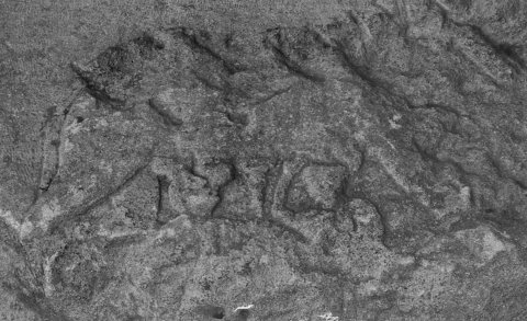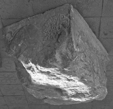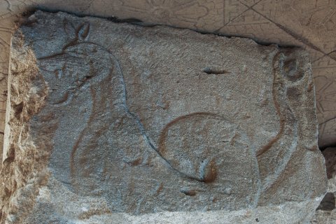 - Auf drei Seiten reliefierter Quader. Auf der Vorderseite Mythos (Lupa Capitolina), auf den Nebenseiten Meerwesen (rechts Seedrache, links Seelöwe).