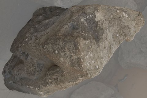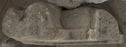 - Fragment eines liegenden Löwen von der Mauerecke eines Grabbezirks.