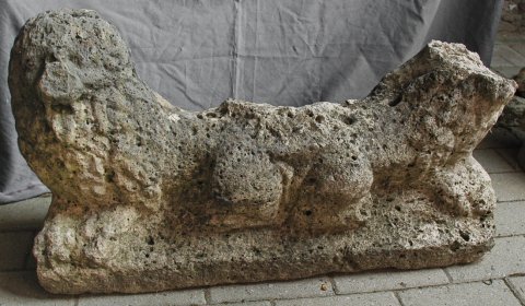 - Mittelteil u. Kopf des rechten Löwen abgebr., stark verwittert
